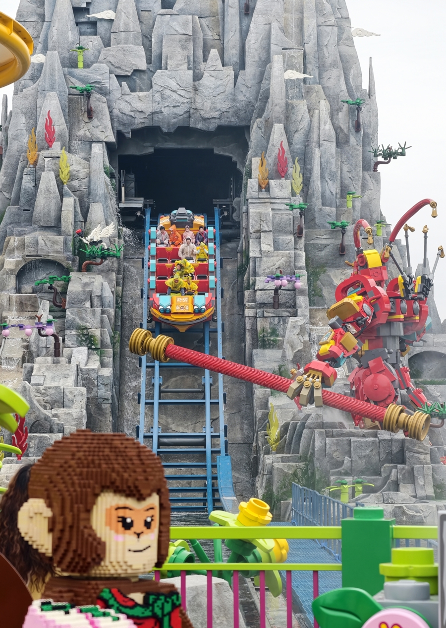经过近一个月的试运营,骑乘项目“乐高悟空小侠花果山冒险”将正式开放。该项目灵感源自中国传统文学故事,结合实景布景、声光电特效与动感骑乘系统,为大小游客带来一场身临其境、心跳加速的主题冒险之旅。
